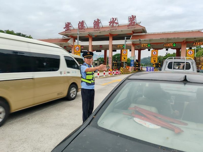 支队同步开展普法宣传工作,通过发放宣传材料、现场讲解等方式,向司乘人员普及道路运输安全知识,执法人员着重宣传“拒乘黑车”,引导群众选择合法交通工具。同时在清水岩收费站出口广场设置便民服务台,配备应急药品、热水、简易修车工具等便民物资,并为往来群众提供路线指引。