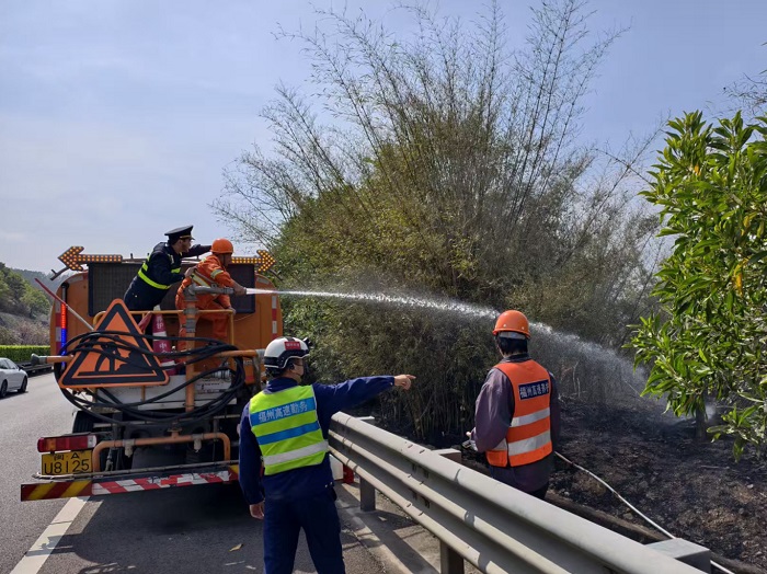 4月5日,福州绕城高速A道137K处隔离栅外边坡起火,浓烟弥漫。福州高速执法支队接警后迅速赶赴现场,发现火情系附近村民祭祖焚烧引发,受风力影响火势蔓延迅速,浓烟遮挡路面视线,存在引发山林火灾及交通事故双重风险。