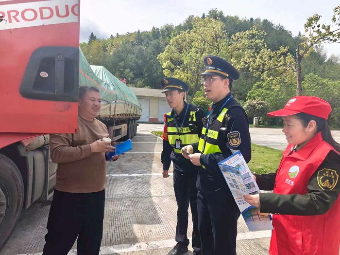 南平高速执法支队联合高速交警、高速管理分公司松溪管理中心,在辖区收费站、服务区同步开展志愿者暖心服务活动。