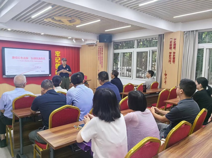 随后,会议室里开展了一场生动的故事分享会。退休干部周翼林娓娓道来,新四军军工生产的繁忙场景清晰地呈现在大家眼前……其母亲,新四军军工女战士徐立森不顾劝说毅然投身武器弹药的研制生产,凭借着坚定的信念和顽强的毅力,为新四军的武器供应提供了有力保障。先辈们的英勇事迹和无私奉献精神,让大家深受震撼,敬佩之情油然而生。