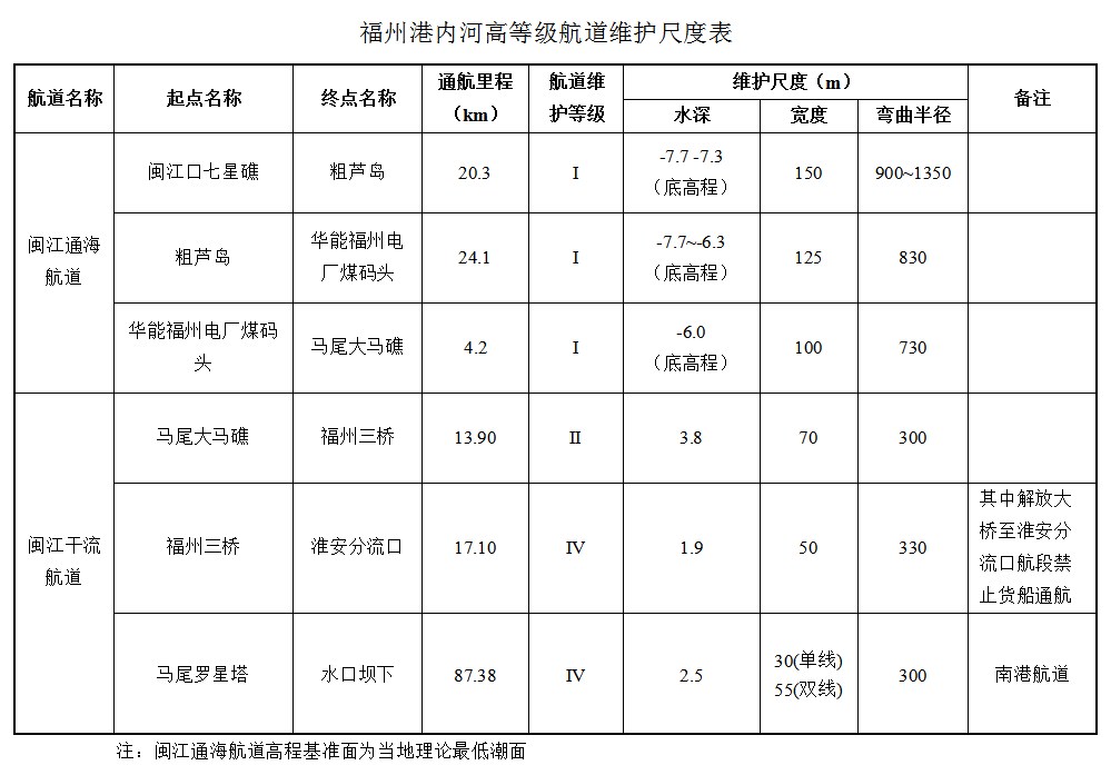福州港内河高等级航道维护尺度