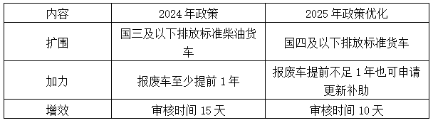 报废补贴:按车辆类型(中型/重型)及提前报废年限分档补贴(最高4.5万元/辆);