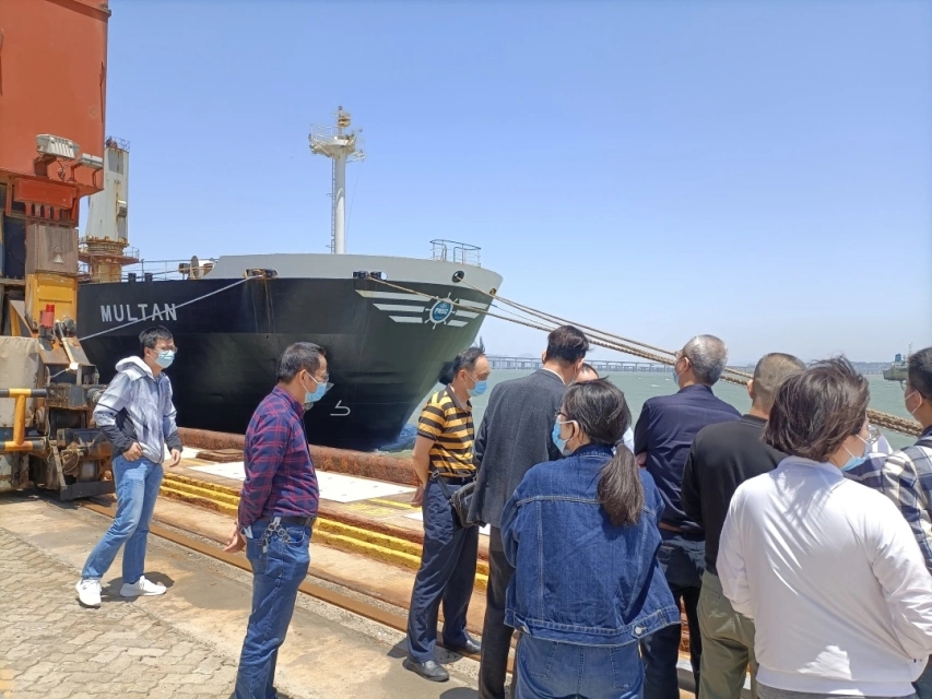 党员们前往泉州港石湖作业区实地参观、实地感受集装箱泊位繁忙的作业景象,进一步学习了解石湖港区多次成功应对疫情突发事件的应急处置经验。