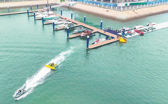 该码头于6月正式投用,已建设并投用泊位49个,其中包括17个对台专用泊位,可为游客提供游艇租赁、行程定制等一条龙服务。除游艇外,还配套了水上超跑、香蕉船、动力帆船、“水上蝙蝠”等热门项目,满足游客多样化需求。