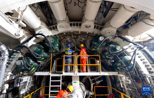 3月4日,中铁十四局工程作业人员在对盾尾油脂泵进行日常巡检。