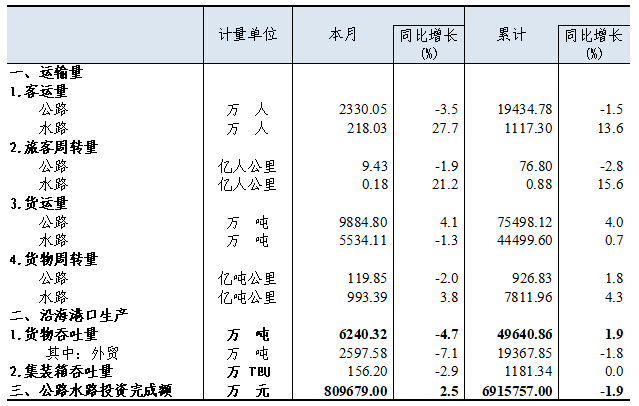 2025年8月全省交通运输行业主要统计指标
