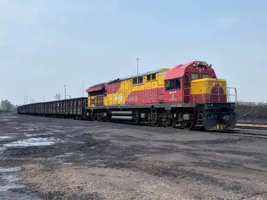 8月5日,“和谐号”系列内燃机车缓缓驶入沙格港铁路专用线。该机车为 HXN5B型内燃机车,HXN5B型大功率交流传动调车内燃机车具有牵引力大、起动加速快的特点,机车装车功率3520kW,可一次性带动42个重载车皮。铁路发运能力由原来的160个车皮/天提升至250个车皮/天,铁路发运量由5000吨/天提升至8000吨/天,有效解决港区铁路运力不足的问题。