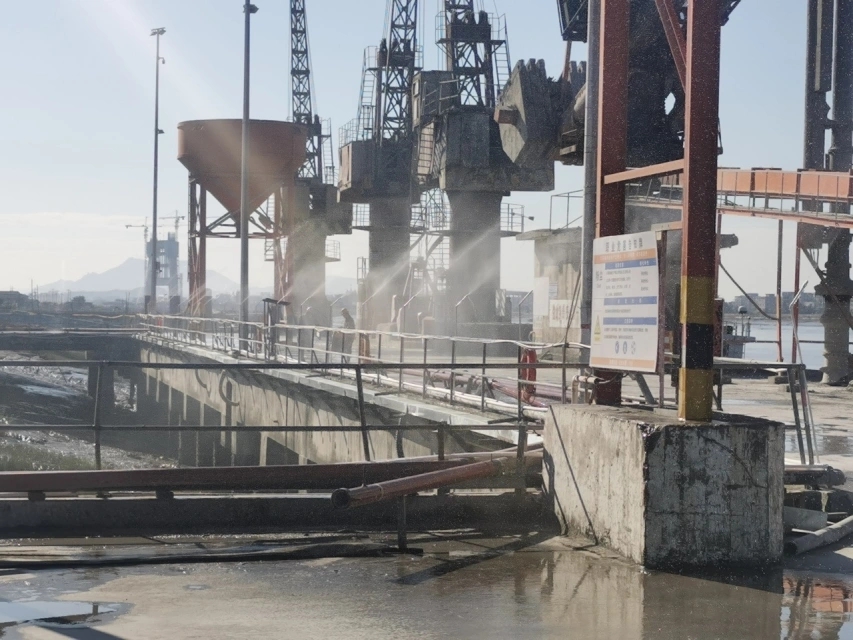 在兴化湾港务站积极引导与配合下,福建稳和仓储有限公司于10月购置了新喷淋设备,于11月中旬安装完毕并投入使用,该喷淋设备由进港大道铺设至码头前沿,进一步抑制因生产装卸活动及车辆行驶引起的粉尘,从源头降低空气粉尘浓度,提高空气质量。