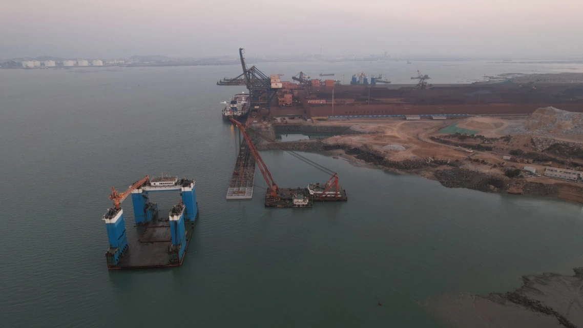 目前,8号泊位工程南围堤基槽开挖基本接近尾声,陆域锤夯有序开展,后轨桩基24小时不间断冲孔作业,棱体抛石及陆域回填也正加快进度快赶快上;11号12号泊位工程基床整平、沉箱预制安装、港池疏浚炸礁等施工有序开展。