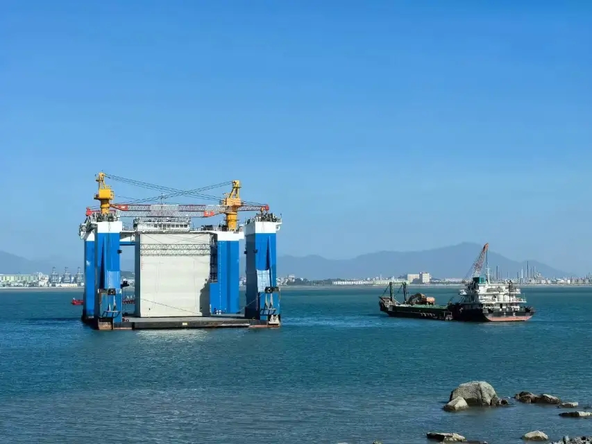 罗屿作业区11号12号泊位工程建设2个15万吨泊位。该项目为落实好“平安工地”要求,针对沉箱预制高处作业频繁的特点,自主开发了一套沉箱模板作业平台,该平台为“一种用于码头沉箱钢筋分片式绑扎的组合设备”,获得国家实用新型专利。同时充分利用多种数字技术和全方位覆盖的智能球型摄像监控机,将工地人、物、场接入云端,实现施工各个环节动态监管,如起重机安全监控系统可动态监测塔吊的运行状态,有力保障塔吊作业安全。