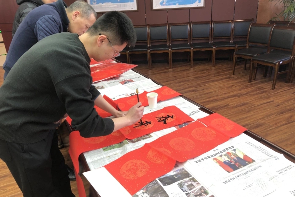 “无联不成春,有联春更浓”。干部职工们以汉字为载体,以墨水饱蘸喜悦,于黑墨红纸间感受着笔墨丹青的独特魅力,凭笔寄意、以字传情,一笔一墨,一横一竖,一撇一捺,一幅幅写满新年祝福的春联和福字,写的是汉字,报的是节讯,含的是情意,暖的是人心。鲜红的纸张渲染着浓浓的节日氛围,寄托着大家对新春、对港口的美好祝愿。