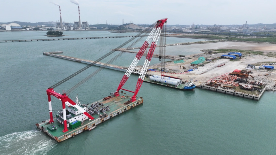 福建百宏化学有限公司百宏化学新材料项目总投资约138亿元,共建设碳四产业链、乙烯下游产业链、动力电池用电解液原料碳酸酯产业链三大产业的生产装置共18套。其一期项目建设所需的产品丁烷塔、吸收塔等大件设备共计13件,计划于2024年6-7月间分别在镇江二重自备码头港、广东中泽自备码头港进行装载,经11个航次海运至湄洲湾港肖厝港区肖厝作业区18号泊位,采取吊装方式进行卸船装车后,运输至泉港石化工业园区百宏化学施工现场。