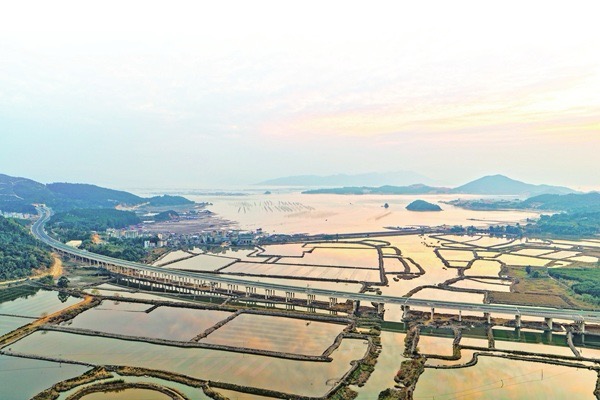 今年7月1日通车的溪南至下邳段,按双向4车道标准建设,途经浒屿、盐田港两座跨海大桥,成为连接霞浦南部沿海与高速路网的重要出入口。霞浦溪南收费站设8条车道,采用“ETC﹢人工﹢自助”模式,高效应对车流高峰。智慧收费系统的应用,使车辆通行效率提升50%以上,为司乘人员带来更加便捷的出行体验。