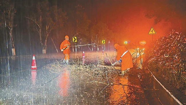3月30日晚,泰宁县境内突降大雨,并伴有短时大风,导致国道G528线泰宁往将乐方向东石村路段树木倒伏,影响夜间行车安全。晚9时许,养护人员赶赴受灾现场,经过1个小时的连续奋战,路面障碍物被全部清理完毕,受阻路段恢复正常通行。